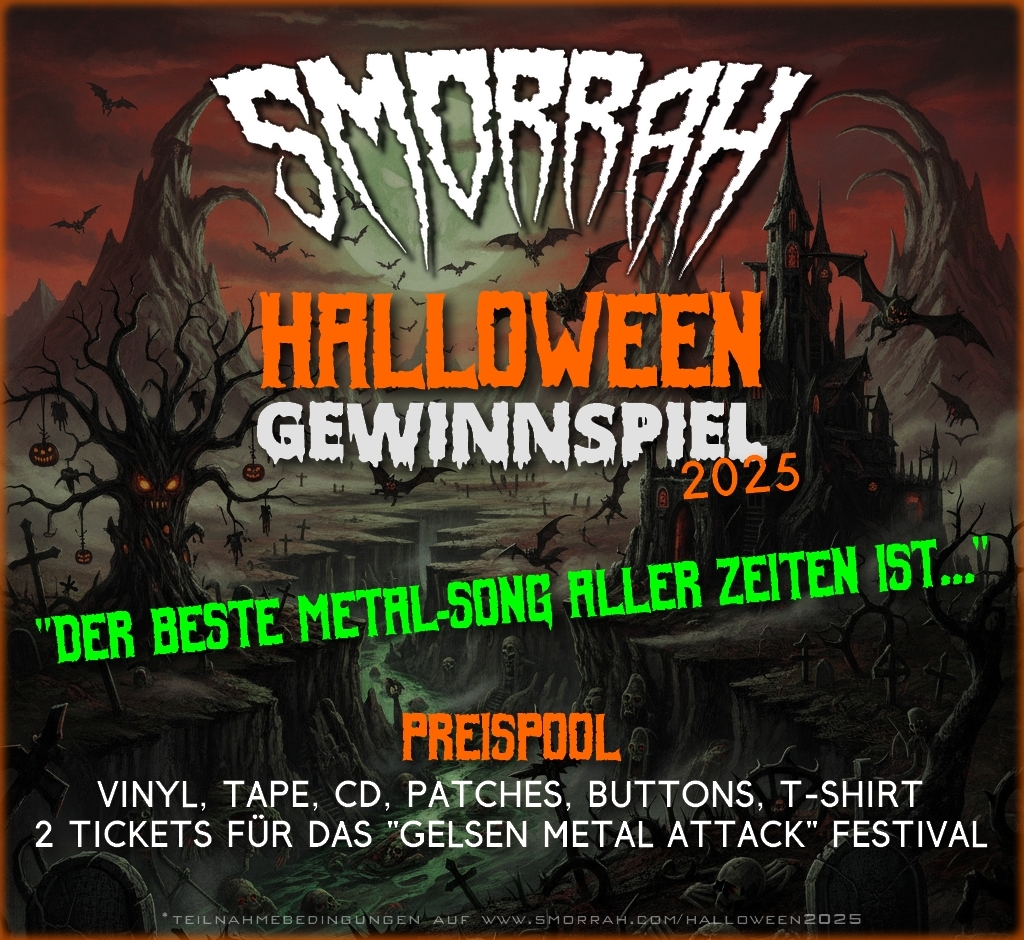 NEWS SMORRAH HALLOWEEN GEWINNSPIEL 2025 By SMORRAH / Oktober 15, 2025 Wie jedes Jahr laden wir euch zu unserem traditionellen Halloween-Gewinnspiel ein. Auf mehrfachen Wunsch dieses Jahr erstmalig auf facebook UND Instagram. Viel Glück Necrosouls! Auf loik! About Author SMORRAH See author's posts Das könnte dir auch gefallen / You also may like Abschiedsshow mit Kraje in der Zeche Carl By SMORRAH / Februar 25, 2025 Band Update: Kraje nicht mehr Bassist von SMORRAH By SMORRAH / Februar 7, 2025 SMORRAH HALLOWEEN GEWINNSPIEL DELUXE By SMORRAH / Oktober 20, 2024 Neues Musikvideo veröffentlicht! „Buried Underneath“ jetzt auf YouTube! By SMORRAH / Juli 21, 2024 Booking: Wir sind ab sofort Teil der REDLIONMUSIC-Family! By SMORRAH / Mai 13, 2024 Post navigation Previous Abschiedsshow mit Kraje in der Zeche Carl Schreibe einen Kommentar Antwort abbrechenDeine E-Mail-Adresse wird nicht veröffentlicht. Erforderliche Felder sind mit * markiertKommentar * Name * E-Mail * Website Meinen Namen, meine E-Mail-Adresse und meine Website in diesem Browser für die nächste Kommentierung speichern.